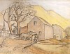 The title "Wisconsin Twilight was found on a Percival Galleries sticker and is apparently the title by which the work was sold and purchased. When the gallery offered it through correspondence, it was referred to simply as "a Wisconsin landscape" done in 1934. Both the agrarian/rural subject and its handling are very typical of a great many sketches, drawings and studies for murals and paintings that currently circulate in the artist's market. As one of the three American "Regionalists" with a widespread reputation for his Associated American Artists-published lithographs, murals and magazine illustrations, Curry is still considered a very desirable and collectible artist.