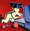Ernest Tino Trova, Falling Man Heads with Blue, Red and Green Inside Yellow Circle, 1967