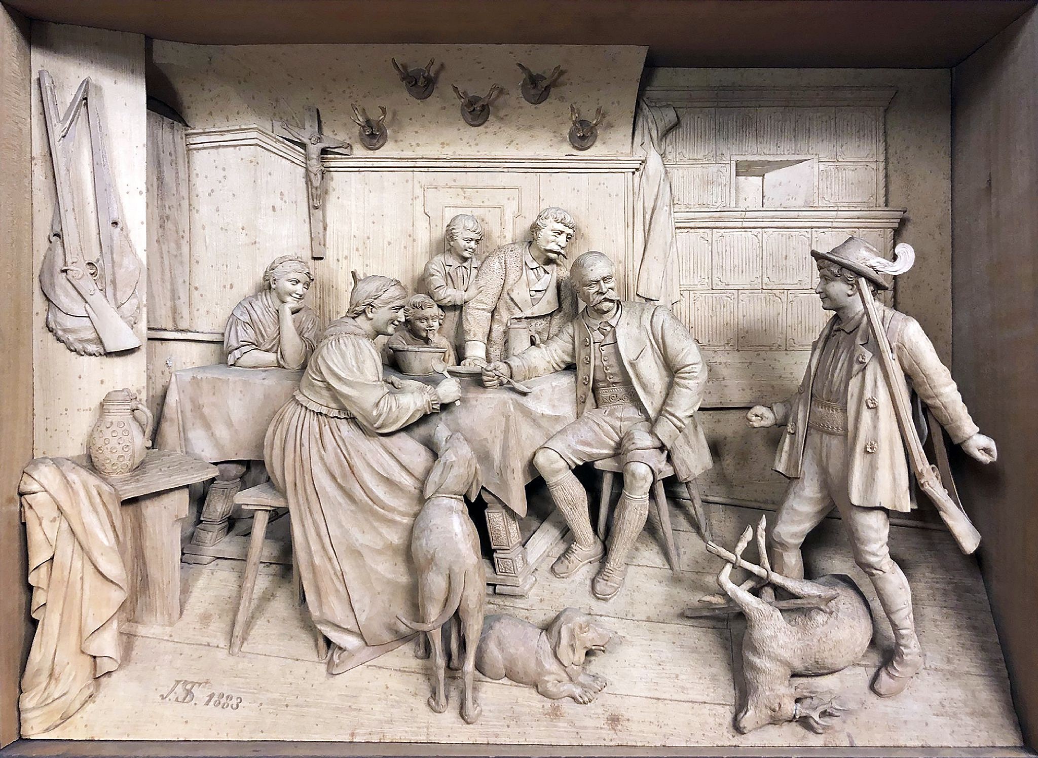 by Julius Steiner (1863-1904) who was the oldest sone of Sebastian Steiner (1836-1896). They were well known Tyrolean court sculptors and carvers, and worked for various members of the Austrian Imperial Family.